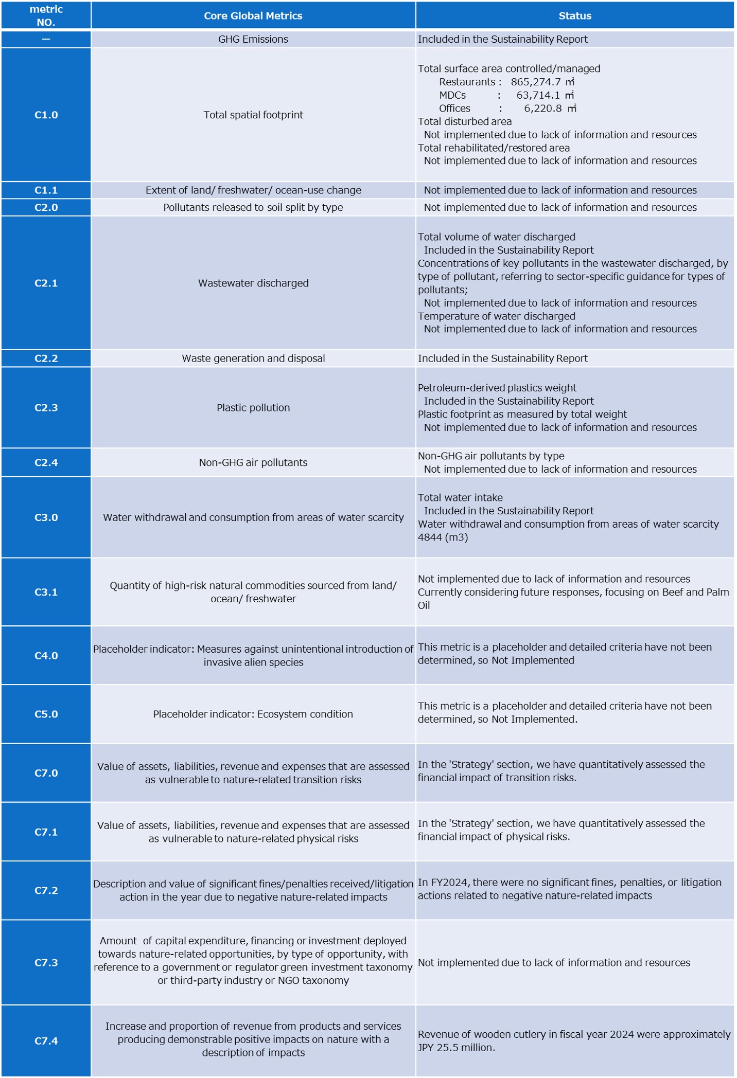 Click here for TCFD and TNFD comparison table ⇒ https://corp.skylark.co.jp/en/sustainability/environment/tcfd_tnfd/