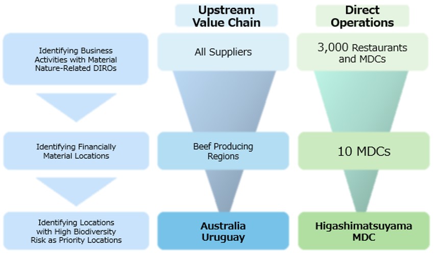 We identify the dependence and impact of our Group's direct operations and value chain on natural capital by utilizing multiple tools recommended by the TNFD. In the "priority areas" where biodiversity and financial risks are of particular concern, we identify and evaluate risks and opportunities related to natural capital.