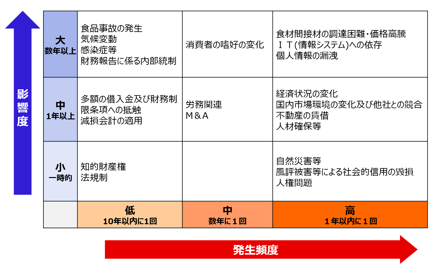 また、地政学的リスクの高まりや政治的混乱、食品衛生上の問題や環境汚染による出荷制限・風評被害もリスク要因となります。
