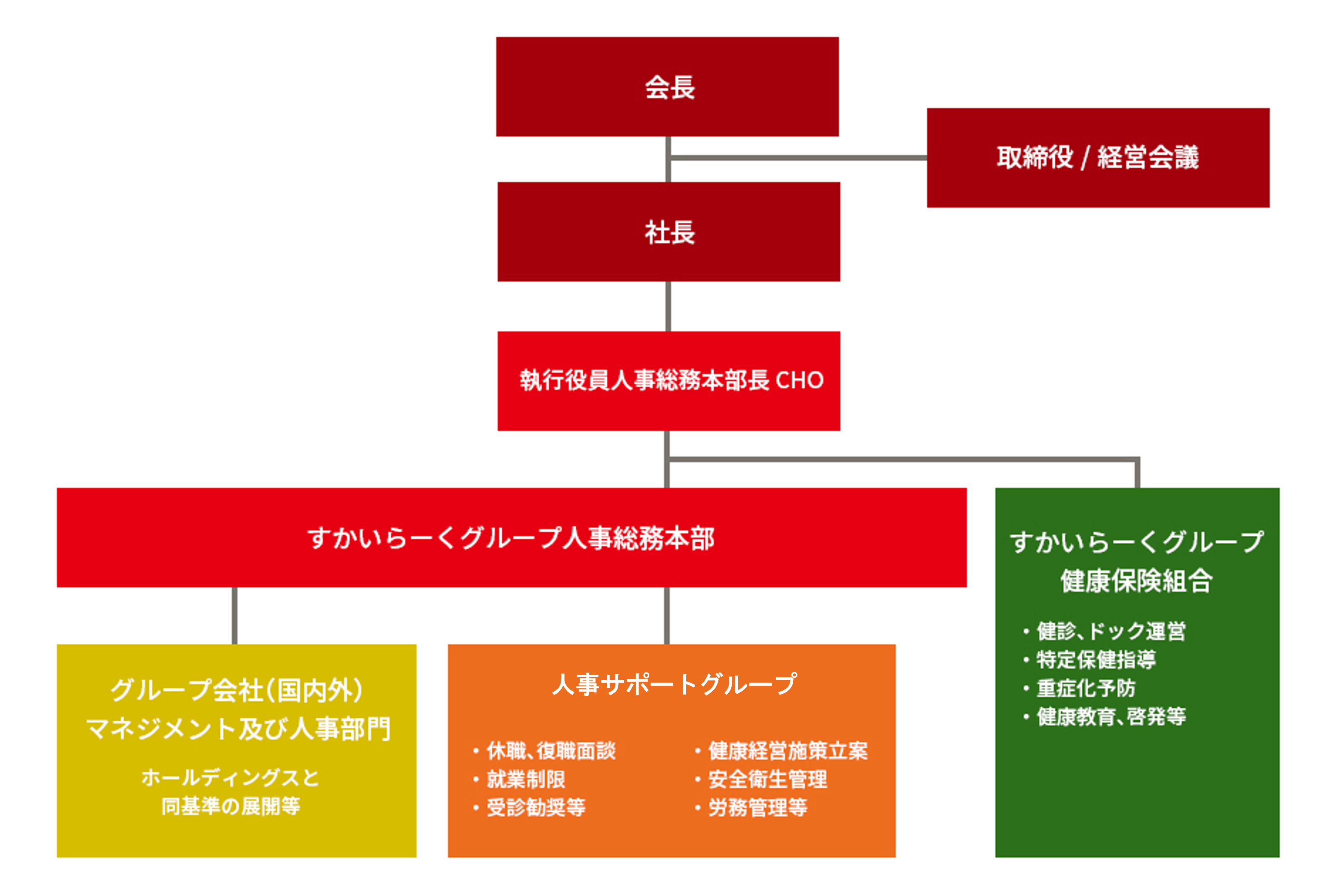 私たちは、「従業員の心身の健康なくして、企業の成長なし」という考えのもと、従業員を貴重な経営資産と捉え、健康経営を最重要課題と位置付けています。