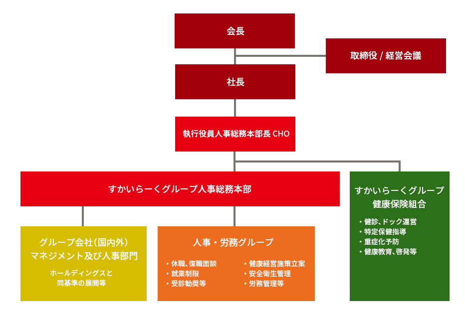 私たちは、「従業員の心身の健康なくして、企業の成長なし」という考えのもと、従業員を貴重な経営資産と捉え、健康経営を最重要課題と位置付けています。